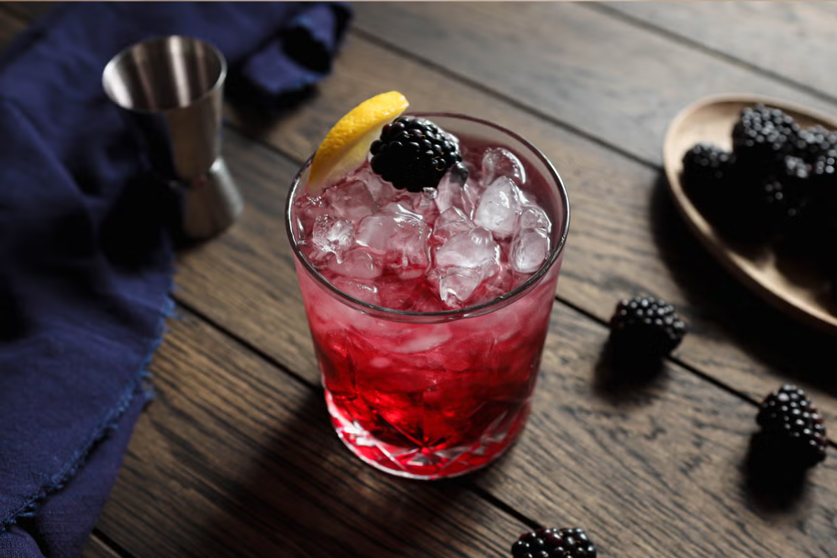 - Sparkling Bramble: Įpilkite šlakelį gazuoto vandens ar prosecco, kad kokteilis būtų lengvesnis ir putojantis.