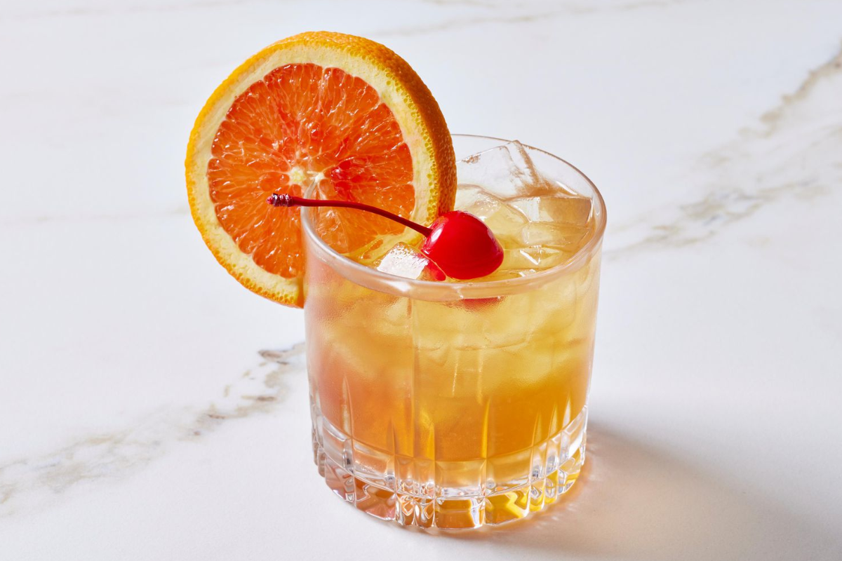 - Papuoškite kokteilį vyšnia ir apelsino griežinėliu. Patiekite iškart.